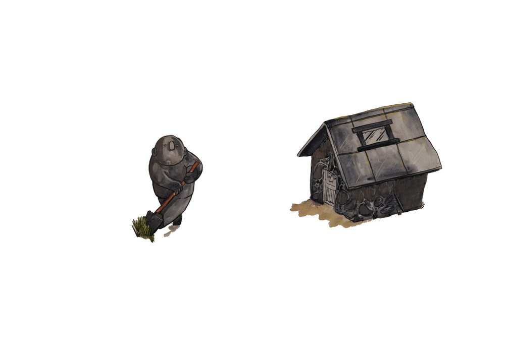 El gesto de recomponer se convierte en acto de calma. Tranquilo repara su casa, ordena lo que parecía roto, acomoda con paciencia cada detalle. Los trazos evocan cuidado y dedicación, recordándonos que el hogar también se construye desde la ternura. Reparar es, al mismo tiempo, sanar y empezar de nuevo.