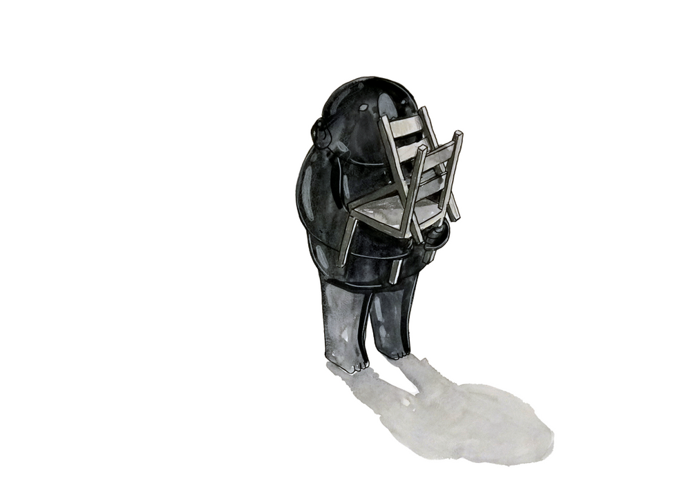 Esta Acuarela pertenece al Capítulo 3 de “30 días con Tranquilo”, dedicado a Objeto/Emociones. La silla, en distintas posiciones, actúa como personaje: espera, sostiene, acusa ausencias y presencias. Su geometría sugiere tensión o descanso; registra lo que ocurrió y lo que está por suceder, habitando silencios.