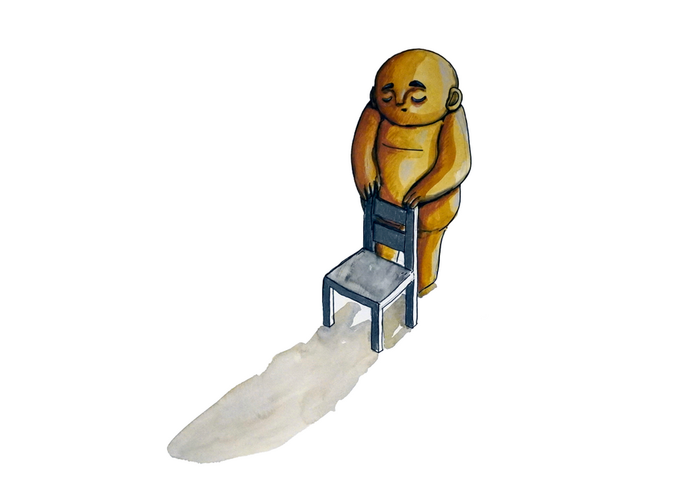Esta Acuarela pertenece al Capítulo 3 de “30 días con Tranquilo”, dedicado a Objeto/Emociones. La silla, en distintas posiciones, actúa como personaje: espera, sostiene, acusa ausencias y presencias. Su geometría sugiere tensión o descanso; registra lo que ocurrió y lo que está por suceder, habitando silencios.