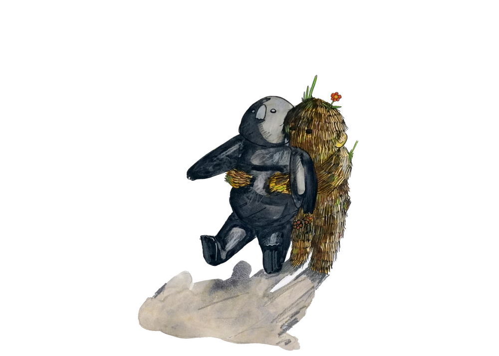 El abrazo surge como gesto central: personajes que se buscan, se sostienen, se funden. Las líneas se entrelazan, los contornos se desdibujan. Cada trazo construye intimidad y comunidad. Aquí, el contacto no es ornamento: es lenguaje. El abrazo expande la calma, multiplica vínculos y redefine la ternura compartida.
